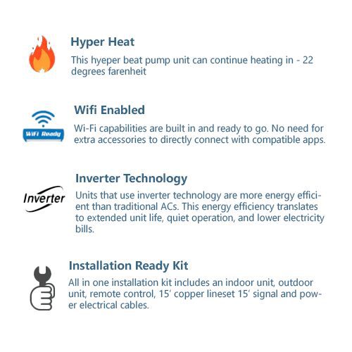 - Hyper heat unit can continue working in low ambient temperatures of -22 degrees Fahrenheit