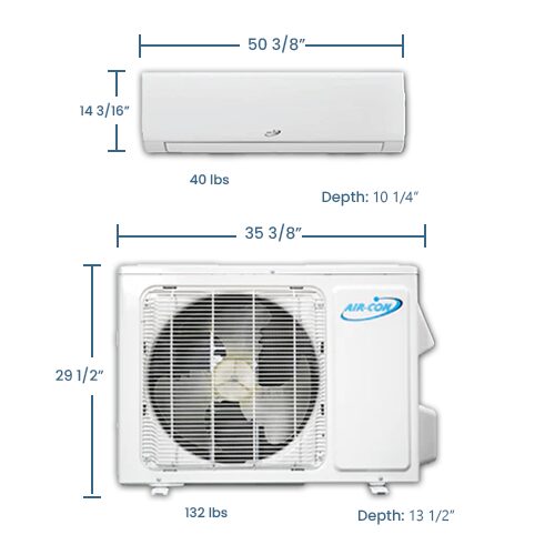 | Indoor Unit Dimensions | 50 3/8″ x 14 3/16″ x 10 1/4″ |